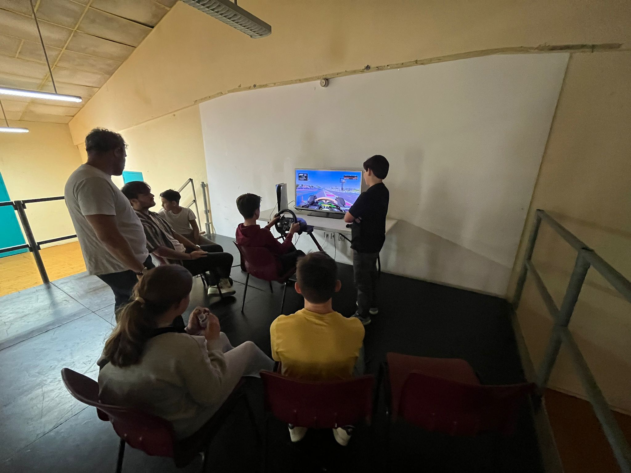 - Un simulateur de Formule 1 équipé d’une structure avec un volant et un pédalier pour une immersion totale.